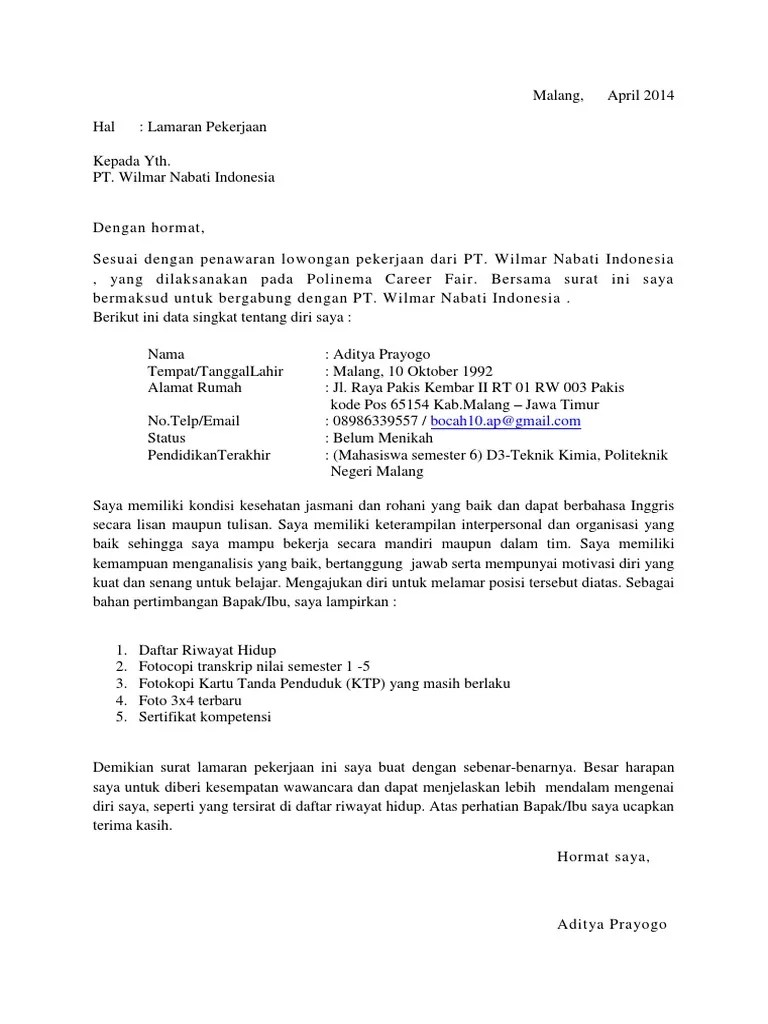 Contoh surat lamaran kerja contoh 1 yogyakarta 10 januari 2019 kepada yth.